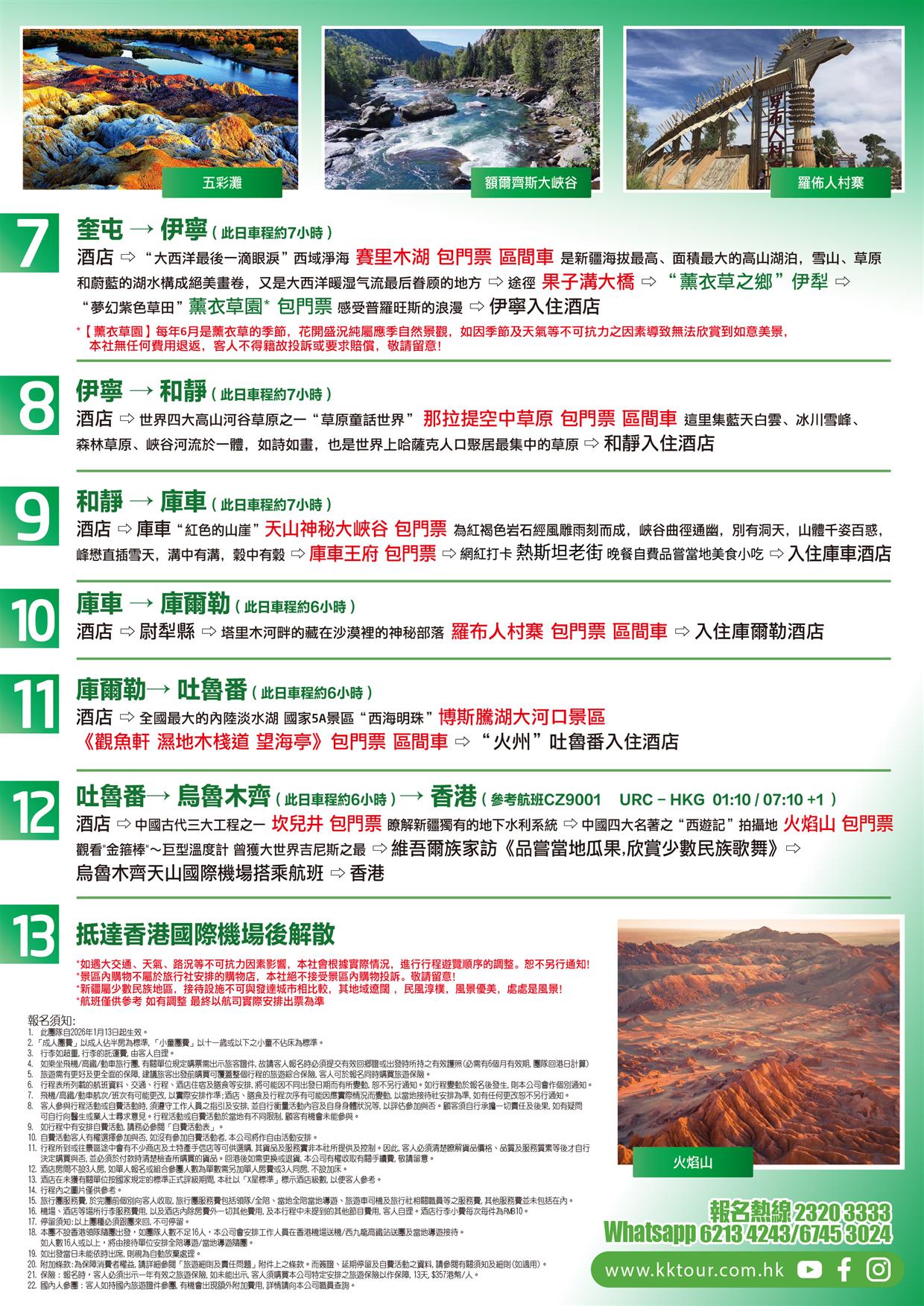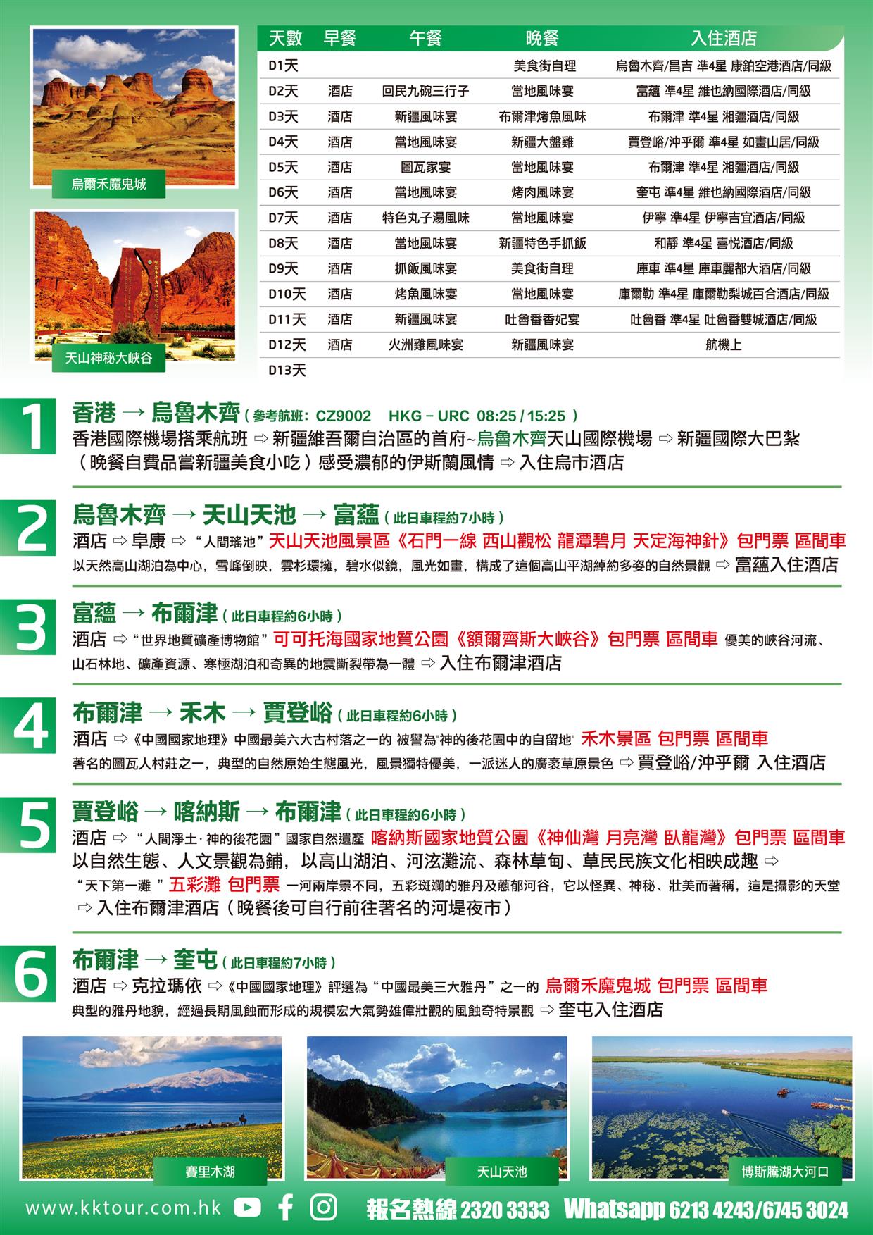 酒店早餐→中國古代三大工程之一【坎兒井】(包門票)瞭解新疆獨有的地下水利系統→中國四大名著之“西遊記”拍攝地【火焰山】(包門票)觀看"金箍棒"~巨型溫度計]曾獲大世界吉尼斯之最→【維吾爾族家訪《品嘗當地瓜果,欣賞少數民族歌舞》】→烏魯木齊天山國際機場搭乘航班→香港
