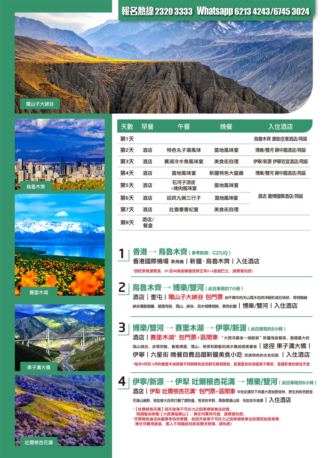 | 時間 | 成人價 | 小童價 | 團隊情況 | |