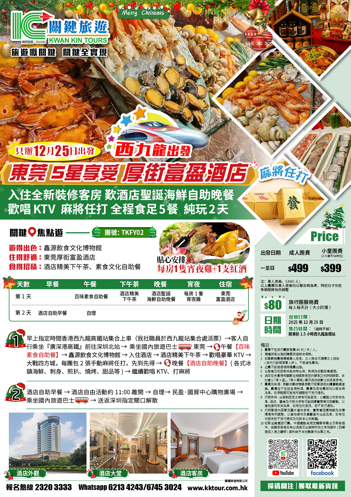 (聖誕加班)東莞5星享受厚街富盈酒店 豪歎酒店海鮮自助晚餐 歡唱KTV 麻將任打純玩2天