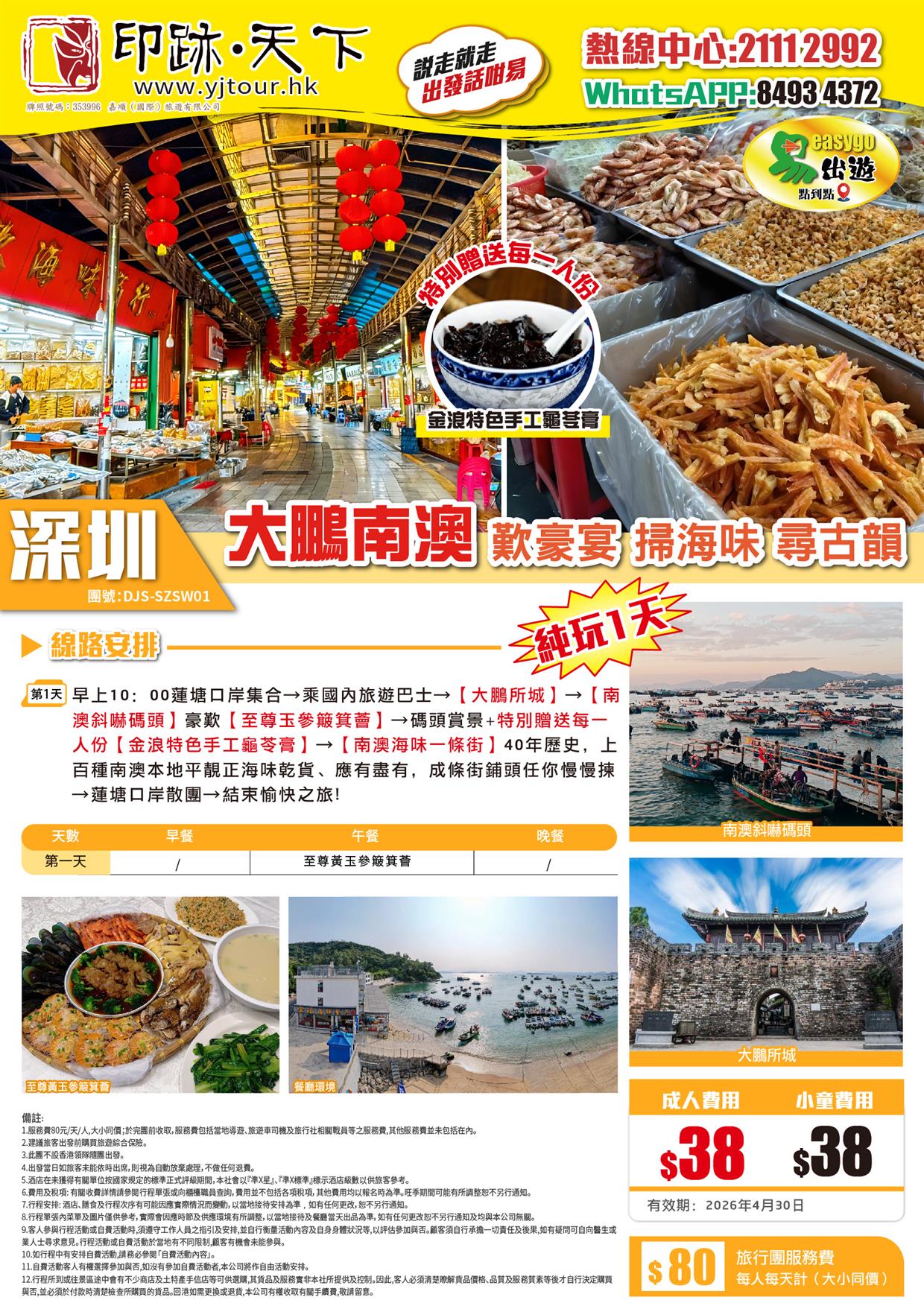 | 時間 | 成人價 | 小童價 | 團隊情況 | |