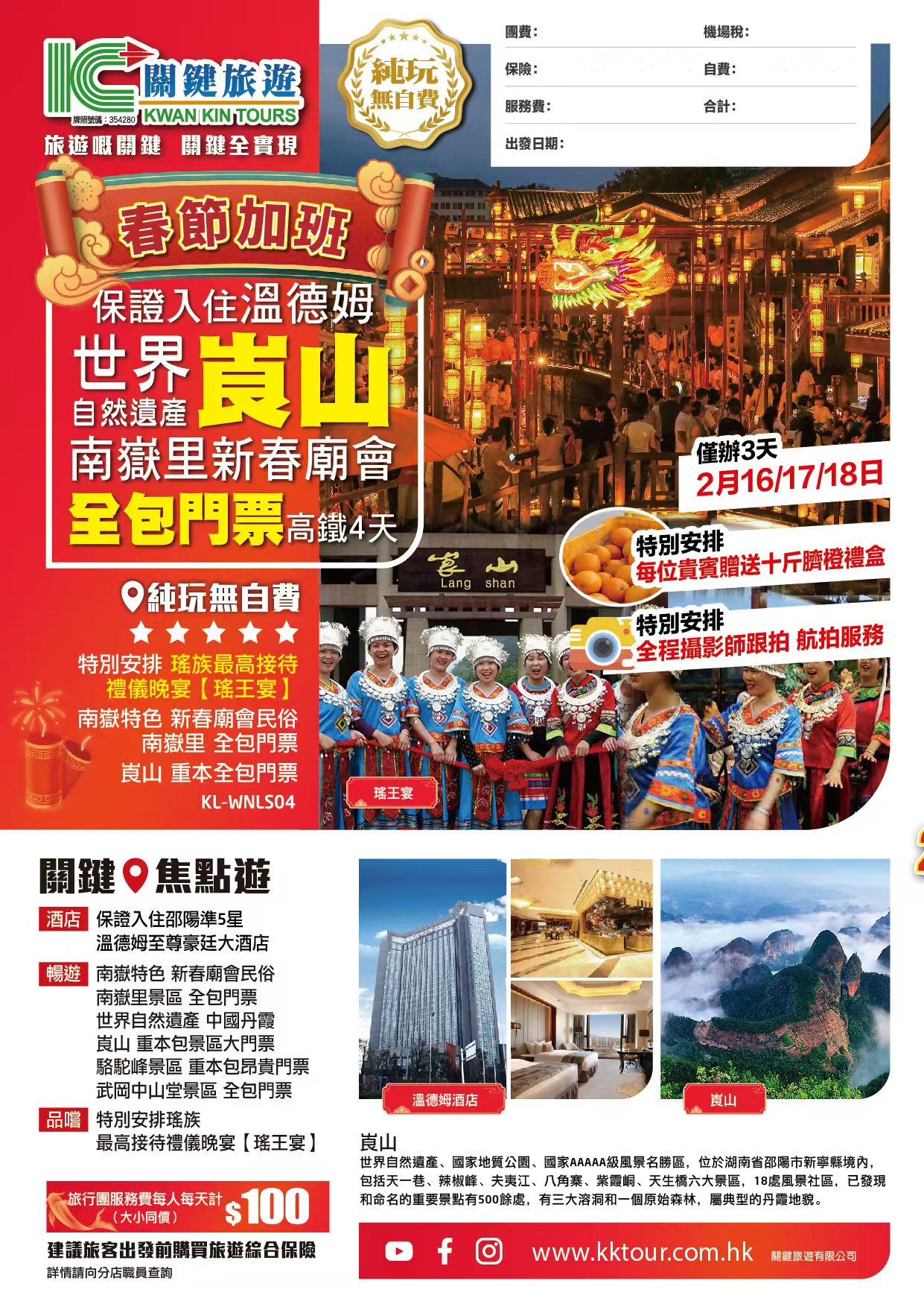 春節加班 世界自然遺產崀山 南嶽里新春廟會 保證入住【溫德姆】純玩無自費高鐵4天