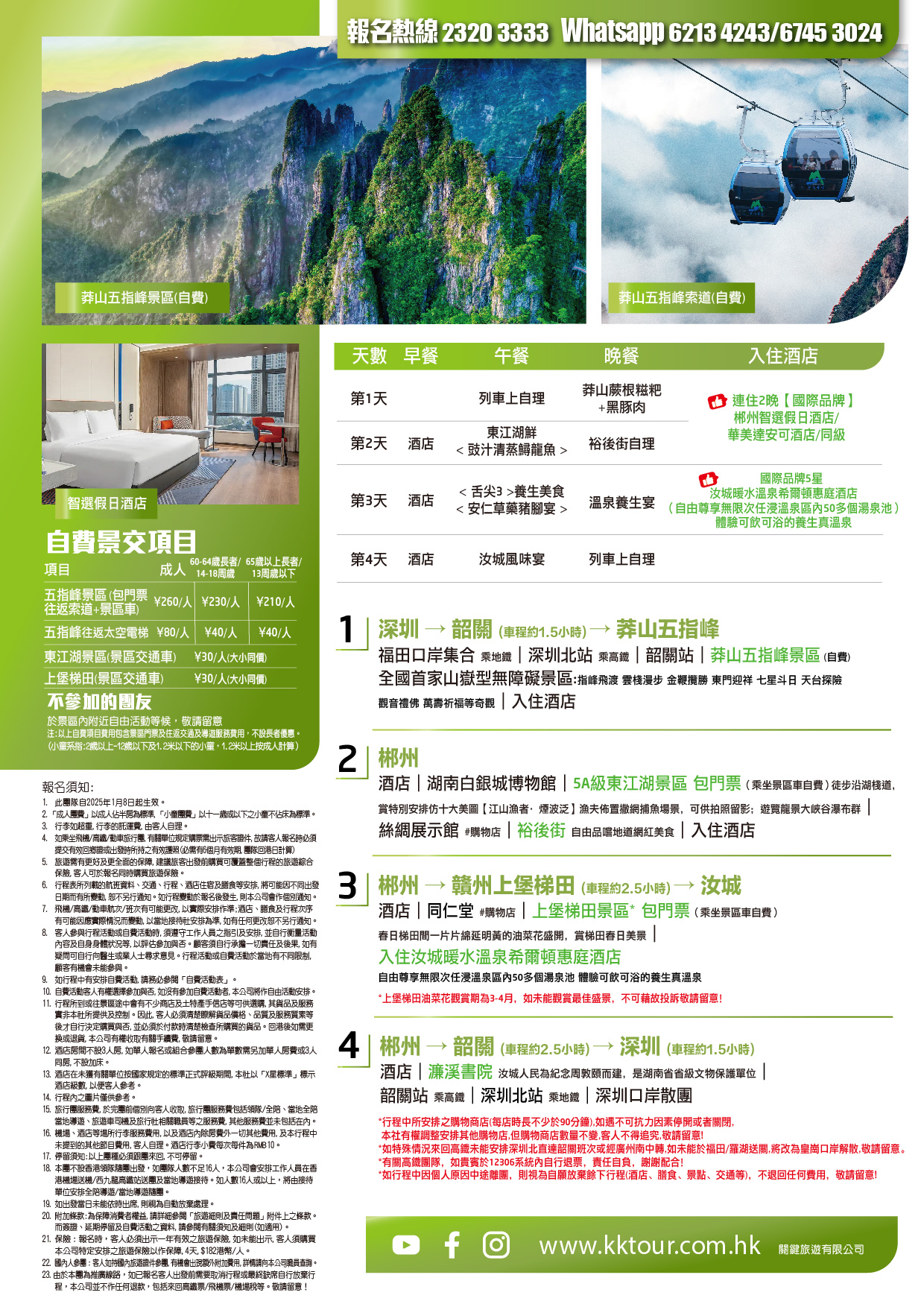 *如行程中因個人原因中途離團,則視為自願放棄餘下行程(酒店、膳食、景點、交通等),不退回任何費用,敬請留意!