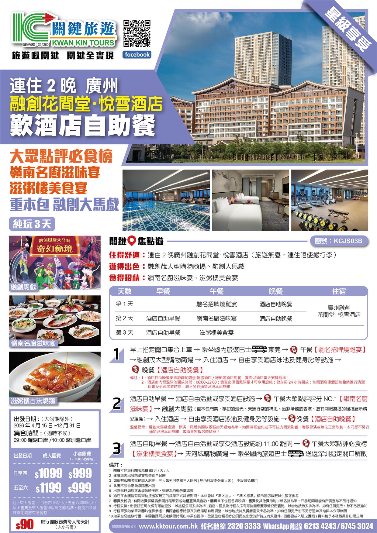 | 時間 | 成人價 | 小童價 | 團隊情況 | |