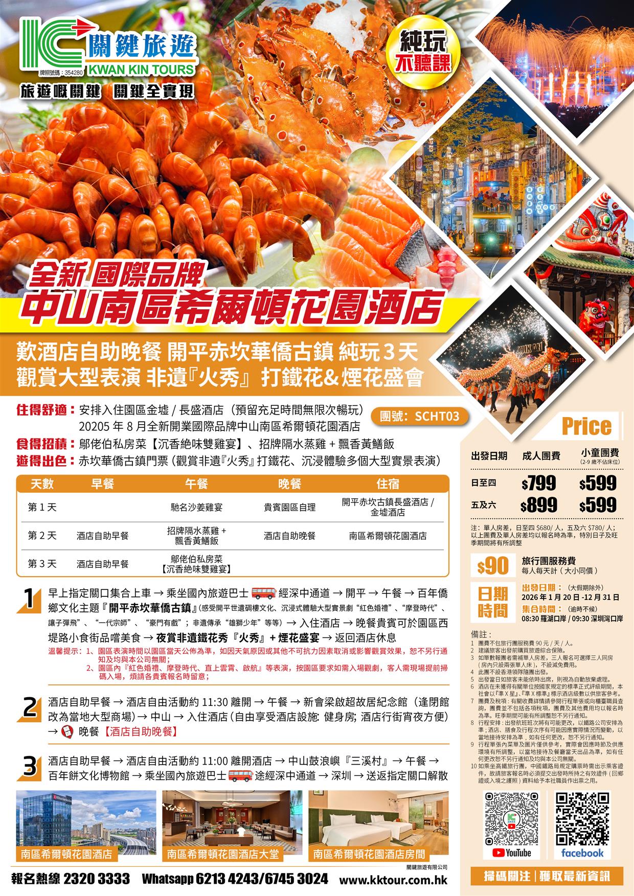 | 03月28日 | 星期六 | $899 | $599 |