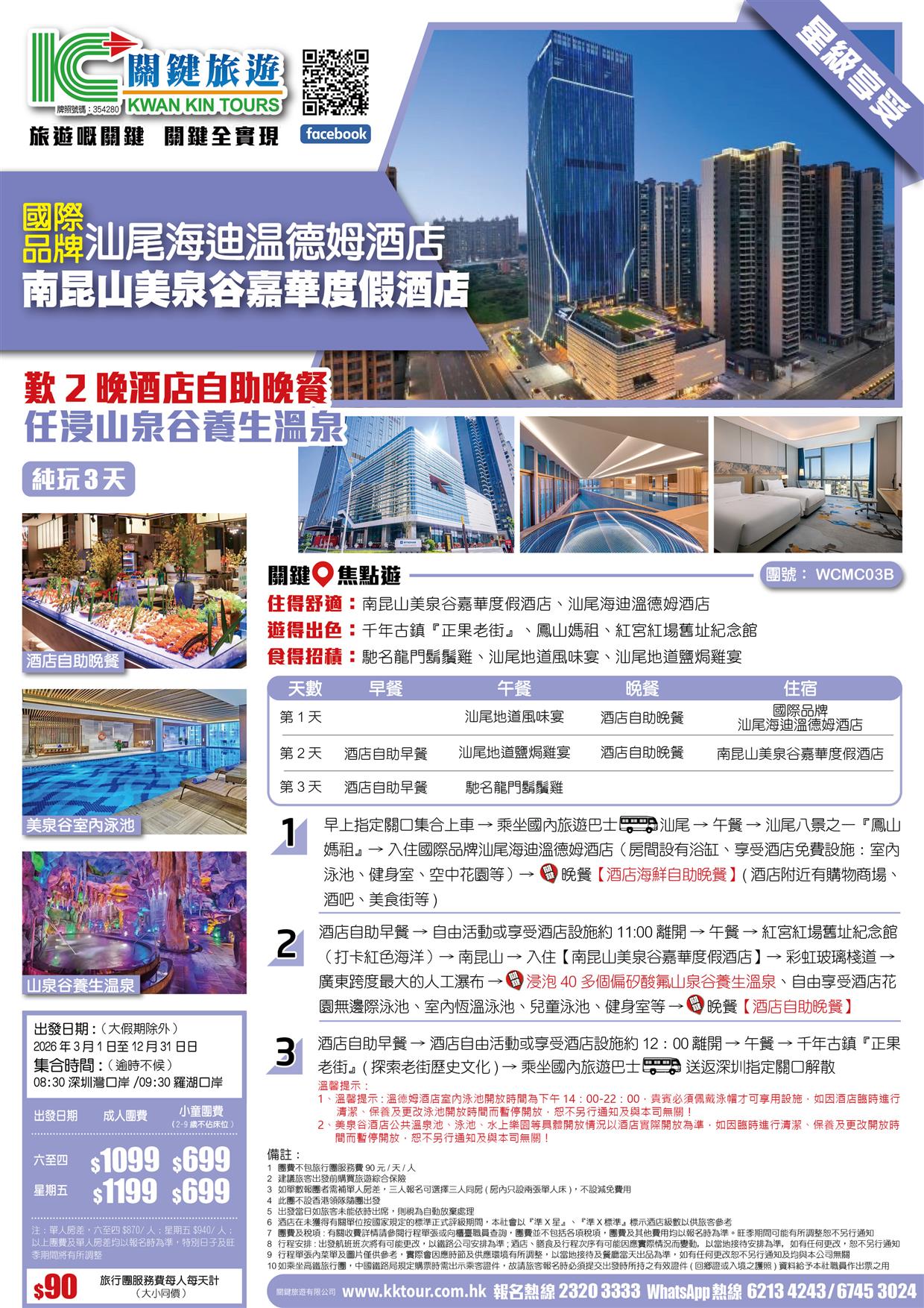 | 時間 | 成人價 | 小童價 | 團隊情況 | |