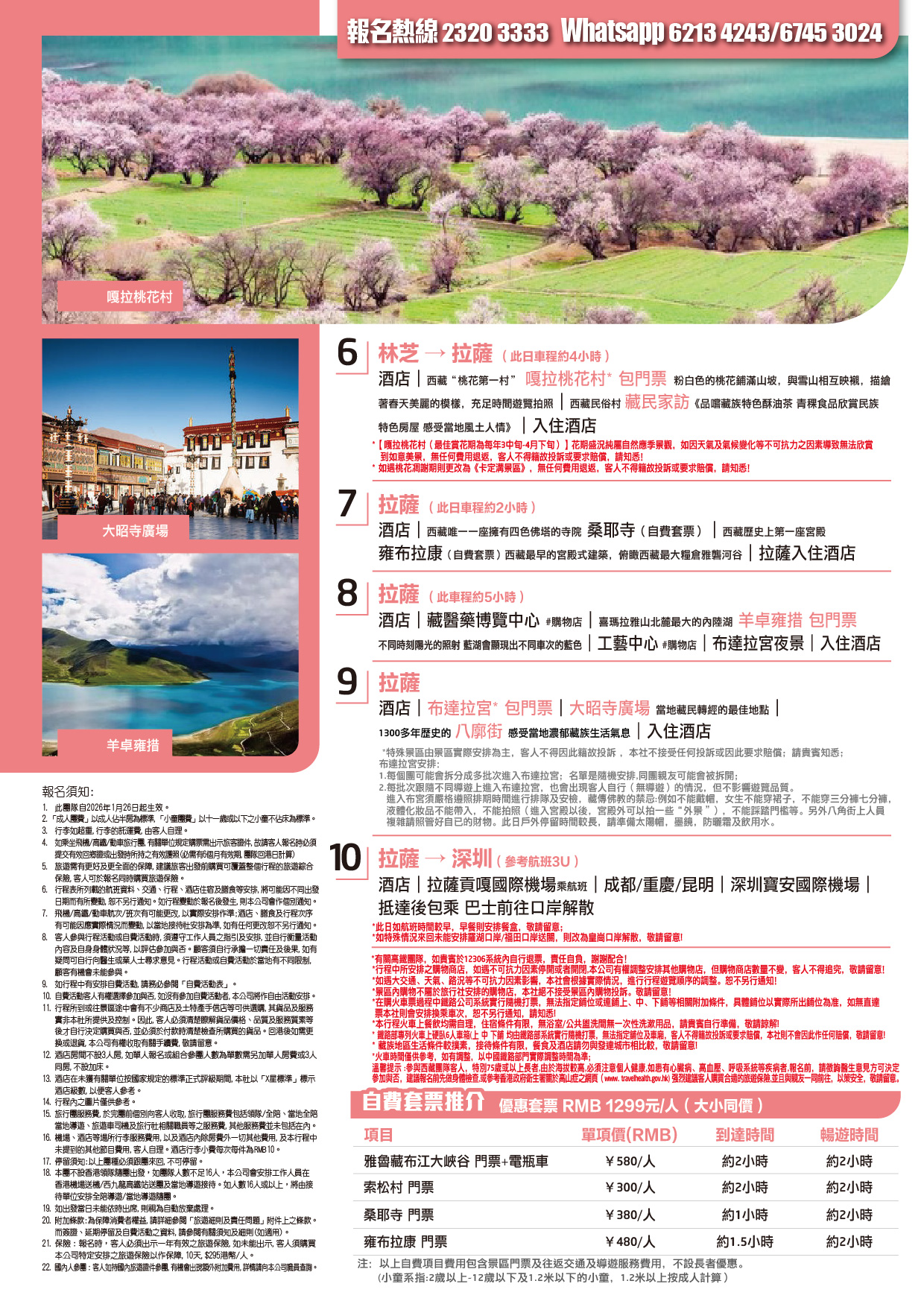 *如遇桃花凋謝期則更改為《卡定溝景區》,無任何費用退返,客人不得籍故投訴或要求賠償,請知悉!