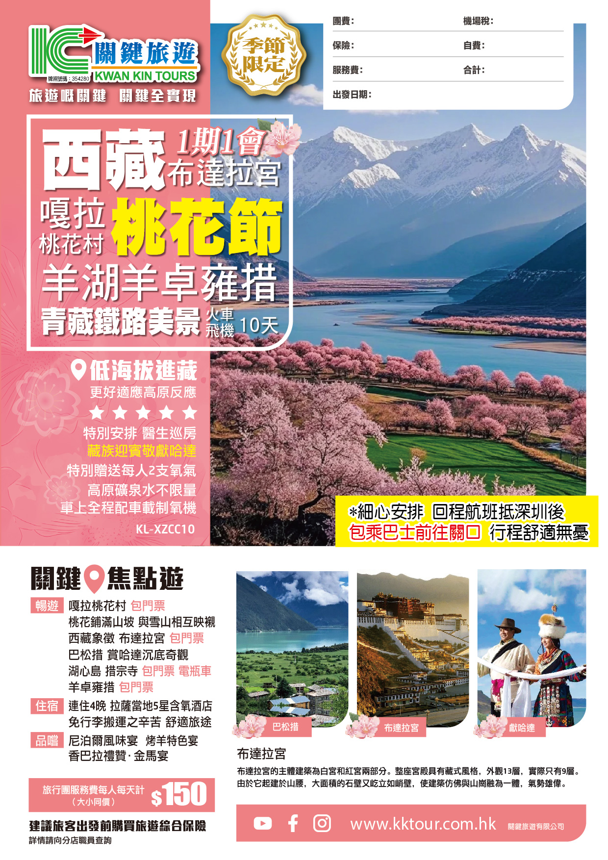 【西藏桃花節• 低海拔進藏 青藏鐵路美景】拉薩布達拉宮 嘎拉桃花村 林芝 單飛單臥10天