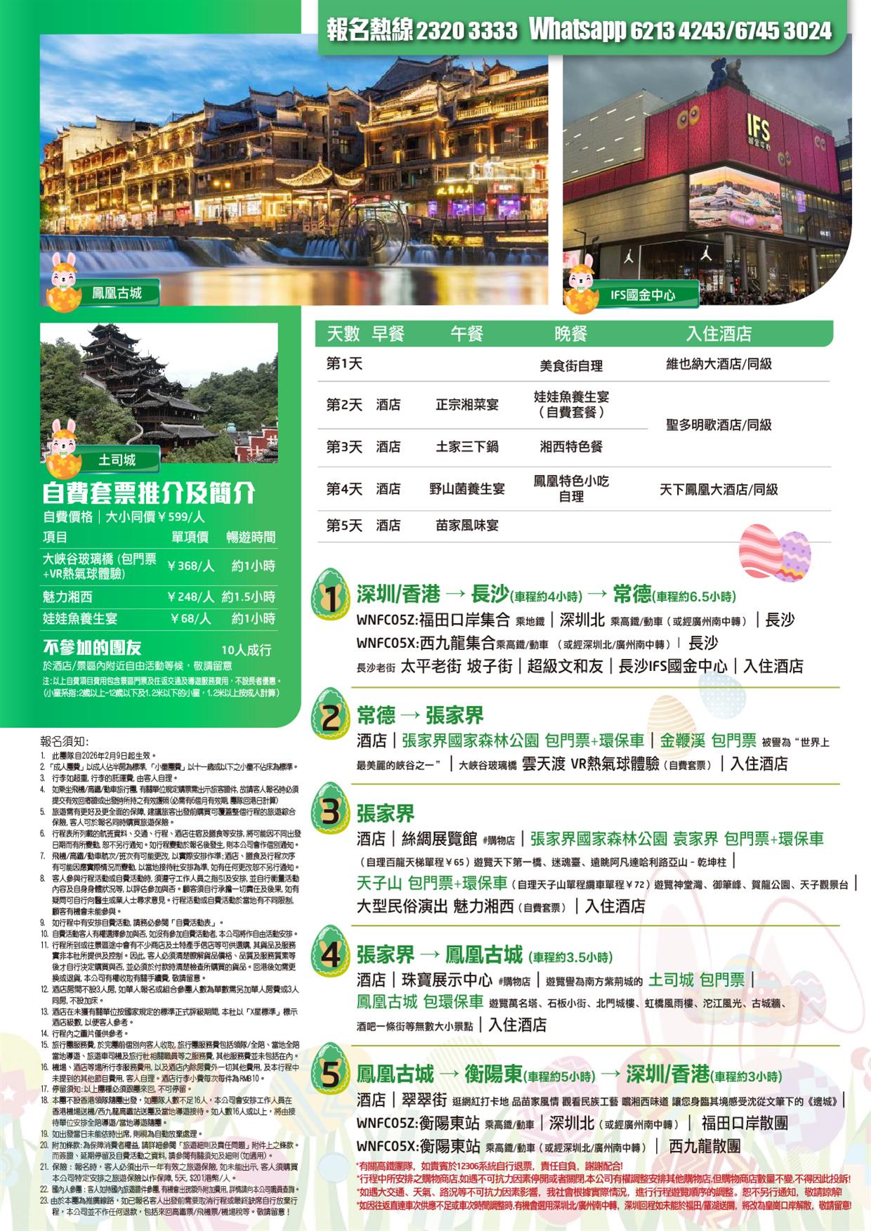 (深圳往返)湘約張家界【復活節加班】長沙經典打卡點 張家界國家森林公園 鳳凰古城 高鐵5天
