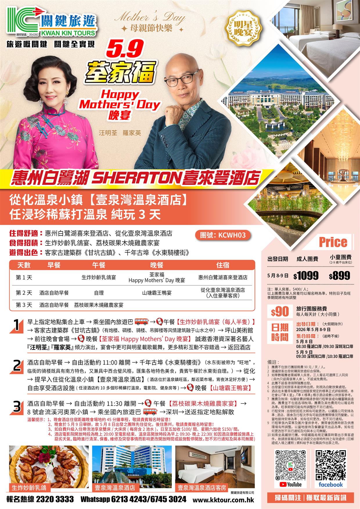 5.9荃家福Happy Mothers Day 惠州白鷺湖喜來登酒店、從化壹泉灣溫泉酒店純玩3天