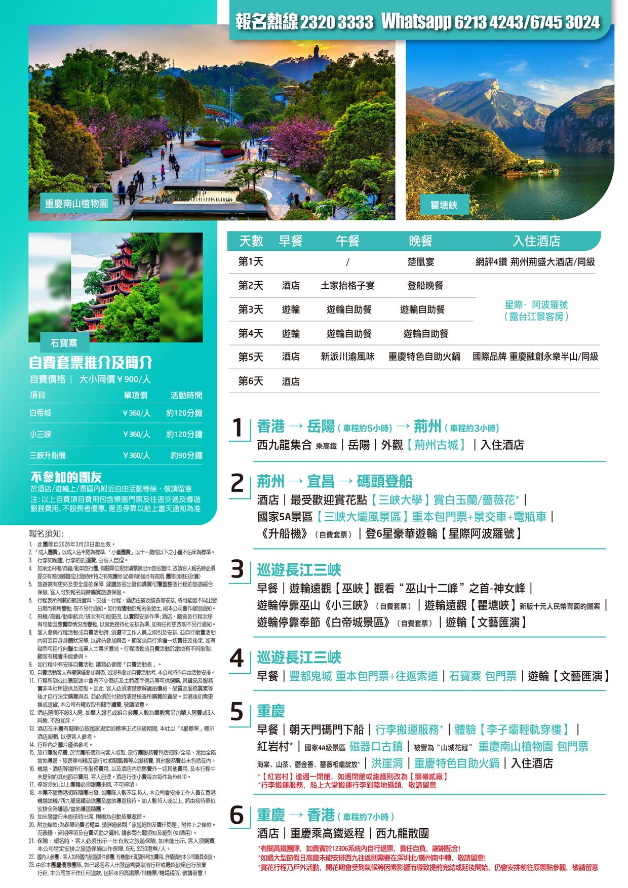 暢遊: 最受歡迎賞花點【三峽大學】賞白玉蘭/薔薇花;【重慶南山植物園】包門票 賞海棠山茶 鬱金香;【三峽大壩風景區】重本包門票+景交車+電瓶車;