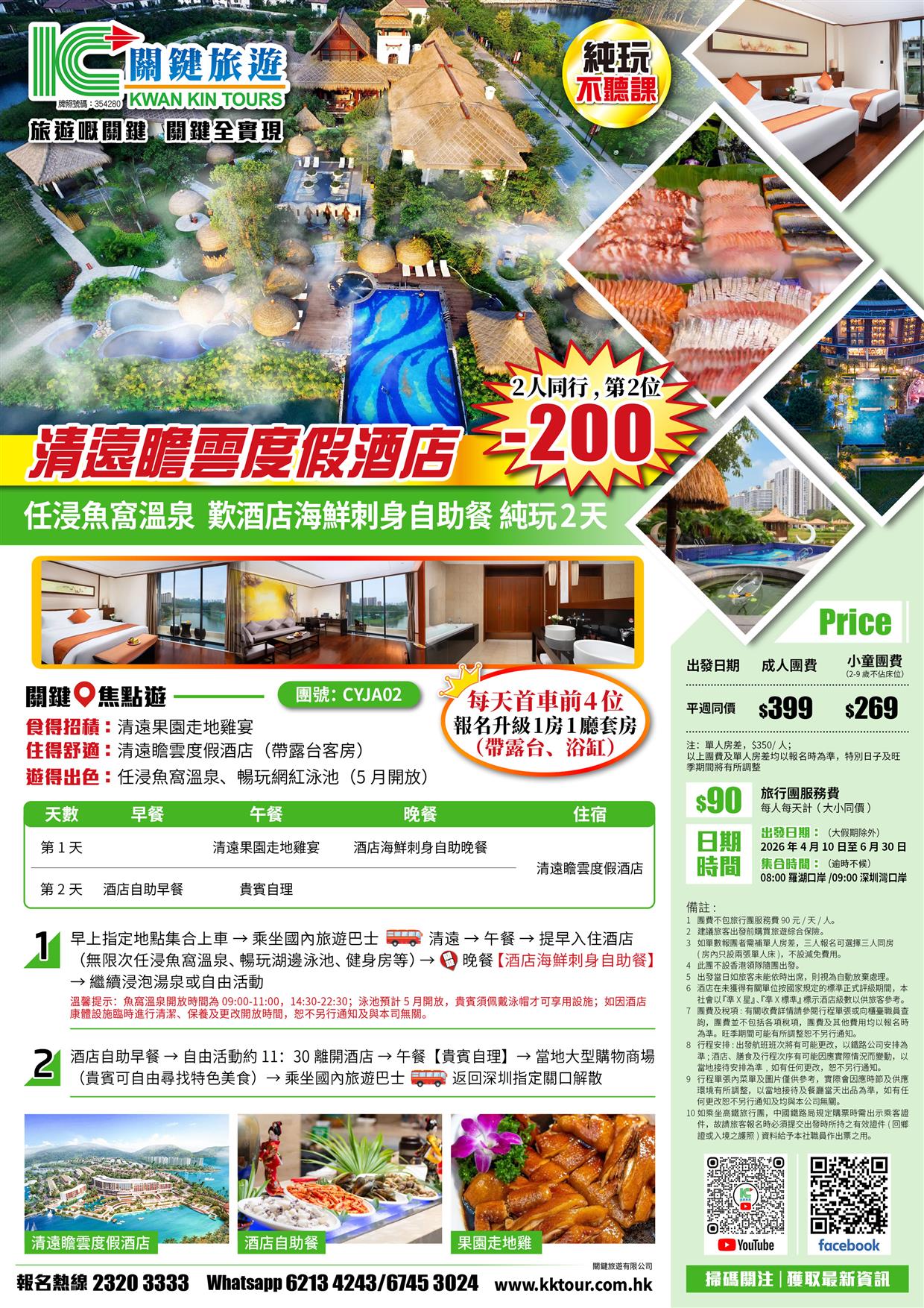 | 04月26日 | 星期日 | $399 | $269 |