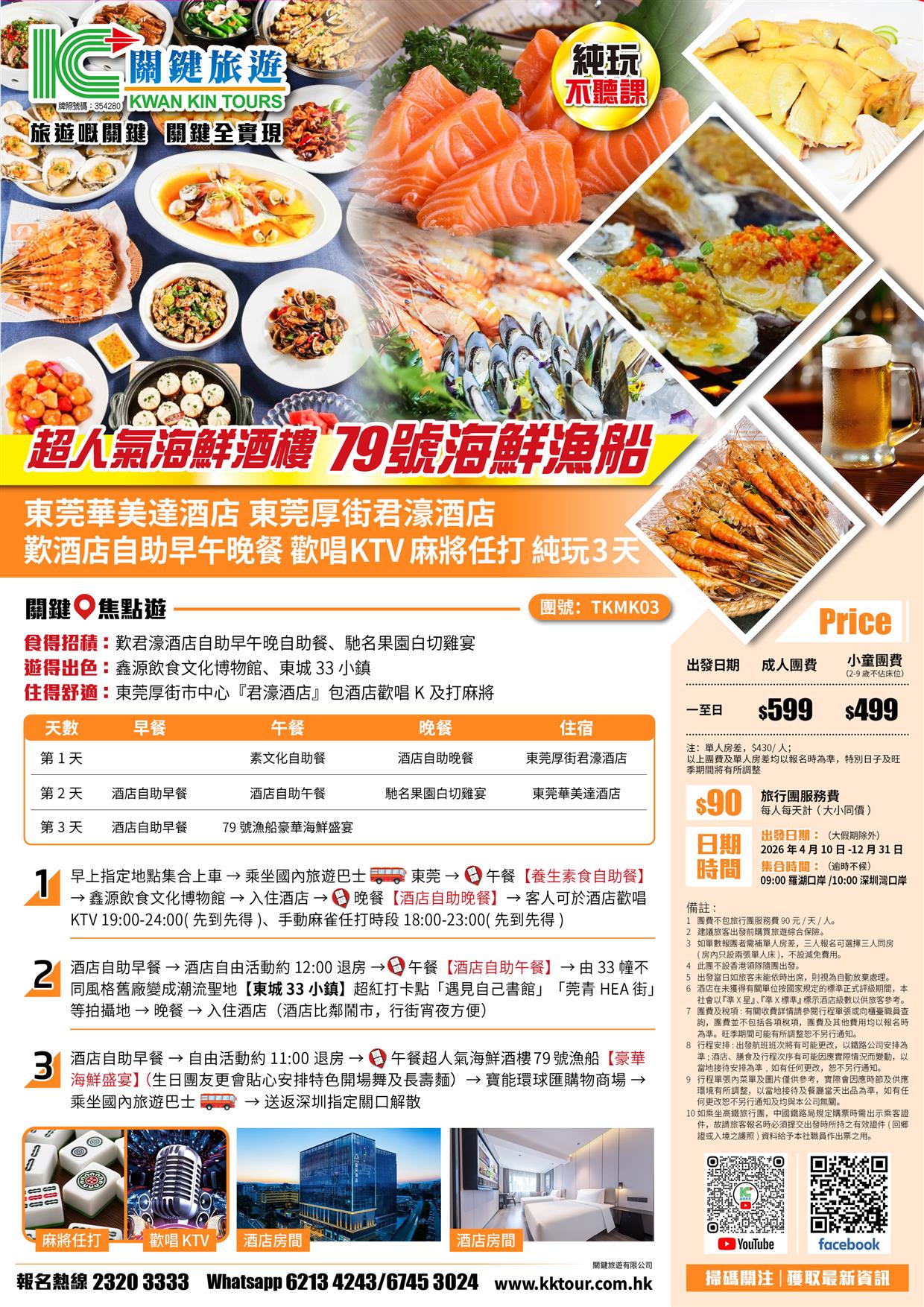 | 04月26日 | 星期日 | $599 | $499 |