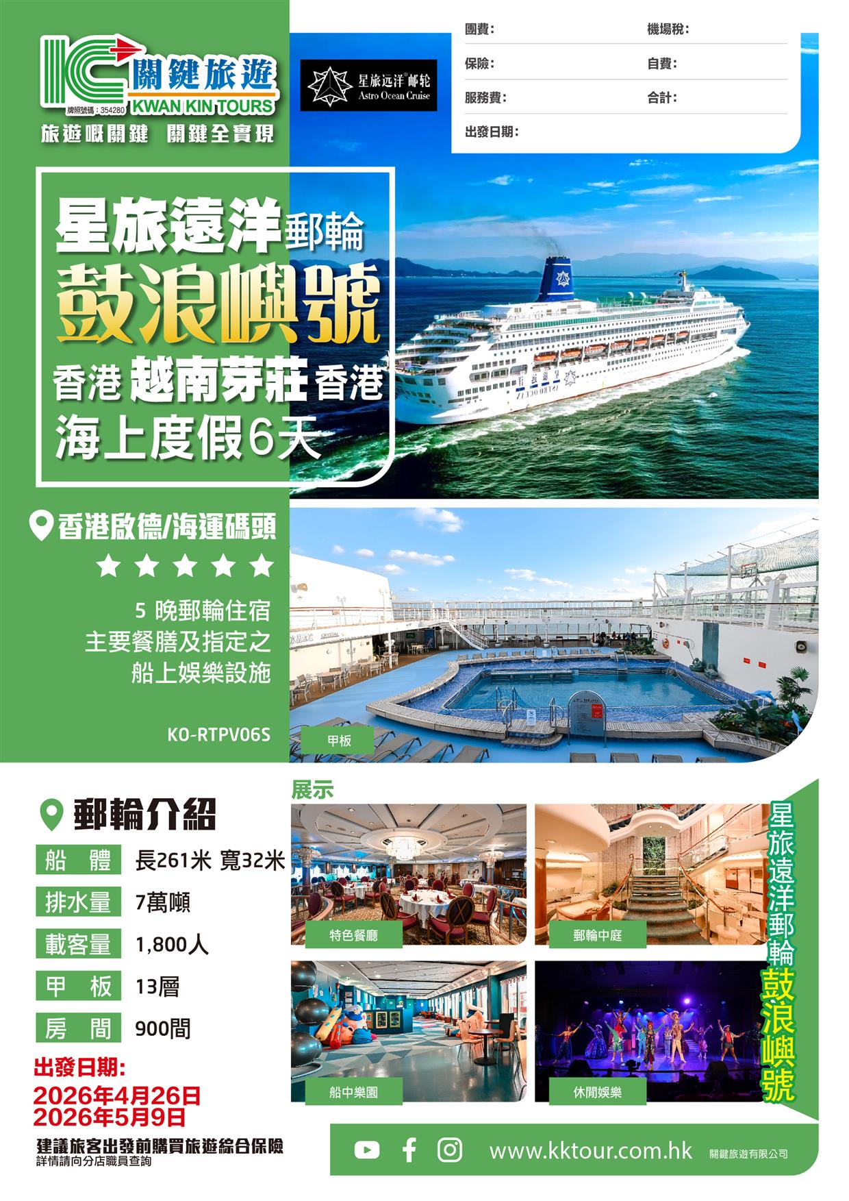 星旅遠洋【鼓浪嶼號】香港-越南芽莊(岸上自由行)-香港 6天5晚 郵輪船票