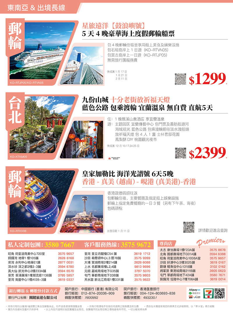 熱線電話 : 2320 3333 旅遊咨詢 WhatsApp : 6745 3024 / 6213 4243